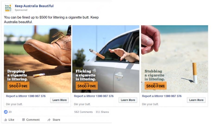 The campaign messaging reminds smokers that flicking or dropping cigarette butts is littering and offenders will face fines.