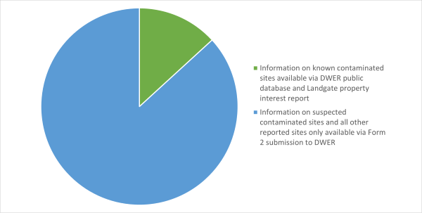 The chart below illustrates the proportion of reported sites available via the online Contaminated Sites Database or Landgate property interest report.